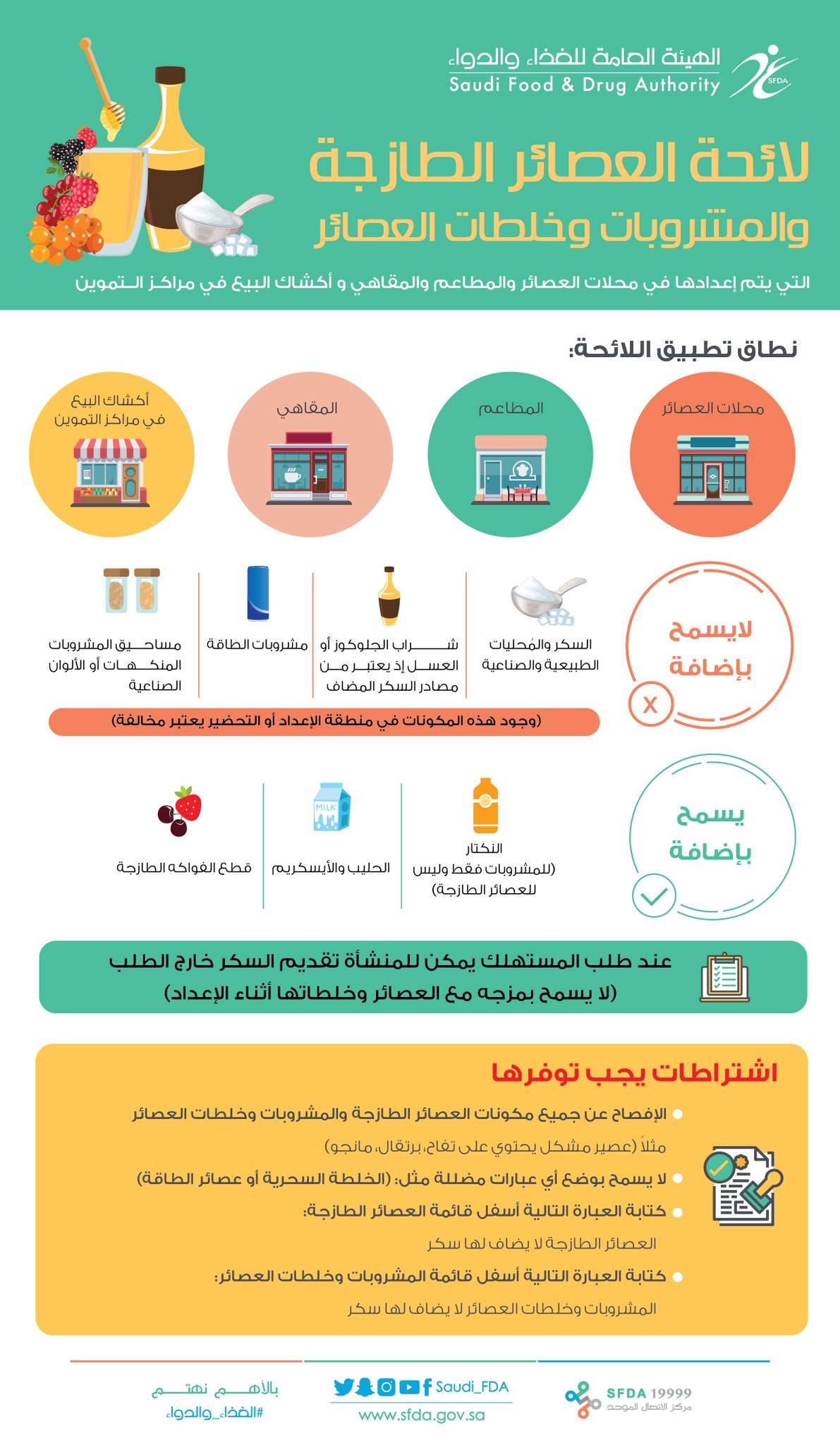 O Xrhsths هيئة الغذاء والدواء Sto Twitter تطبق لائحة العصائر الطازجة والمشروبات وخلطات العصائر على محلات العصائر المطاعم المقاهي وأكشاك البيع في مراكز التموين الغذاء والدواء Https T Co 29uu1iuvkc