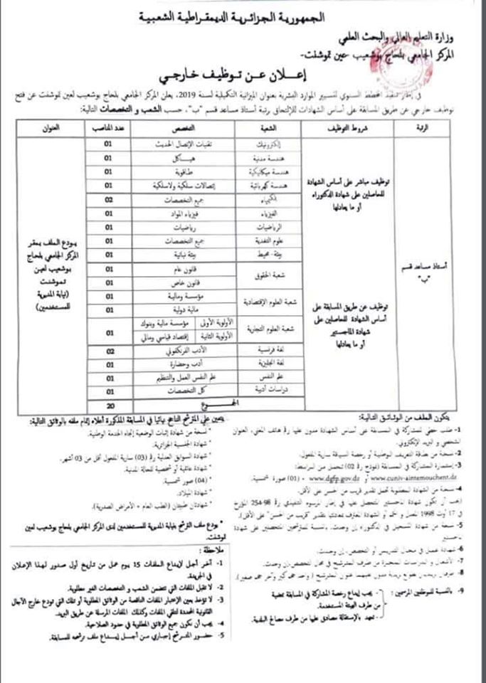 اعلانات عن توظيف في ولايات غرداية تمنراست عين تيموشنت تيارت بسكرة ام البواقي مستغانم قالمة غرداية تلمسان تيبازة سطيف المسيلة