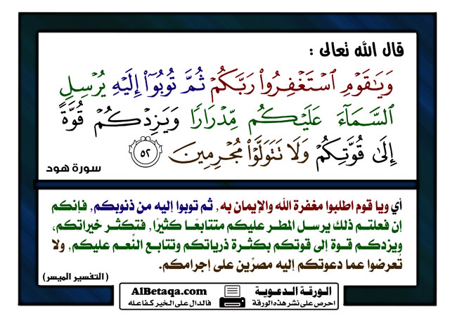 هشام الخليفة Sur Twitter قال تعالى وياقوم استغفروا ربكم ثم توبوا إليه يرسل السماء عليكم مدرارا ويزدكم قوة إلى قوتكم ولا تتولوا مجرمين Http T Co U6fbmltn3s