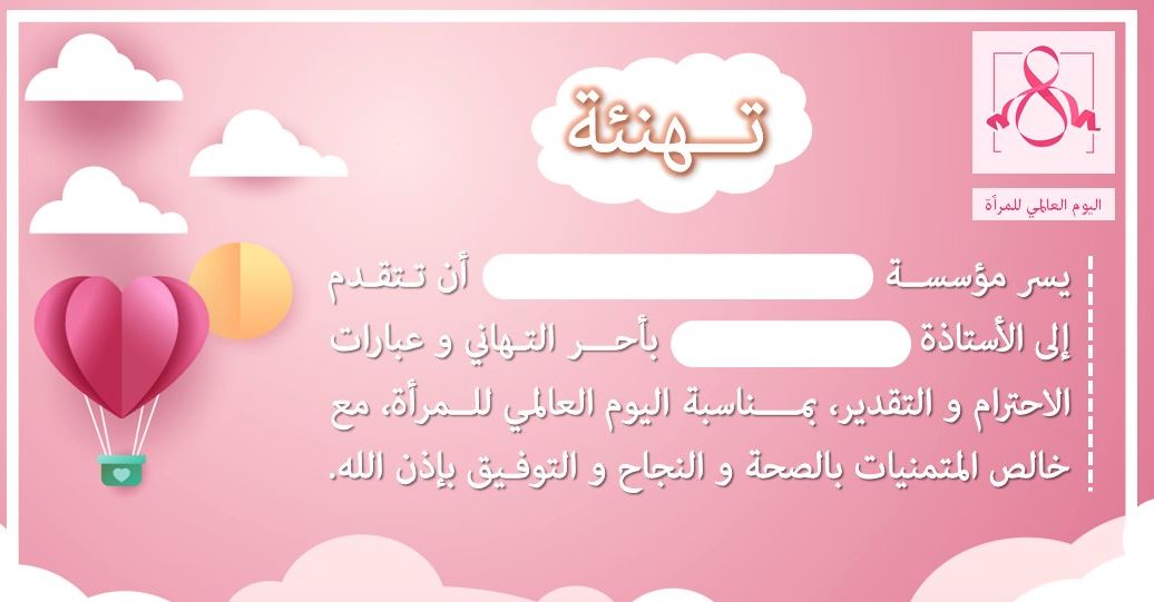بطاقة تهنئة حصرية لفائدة الأستاذات بمناسبة عيد المرأة 8 مارس موقع الأساتذة والتلاميذ للتعليم عن بعد